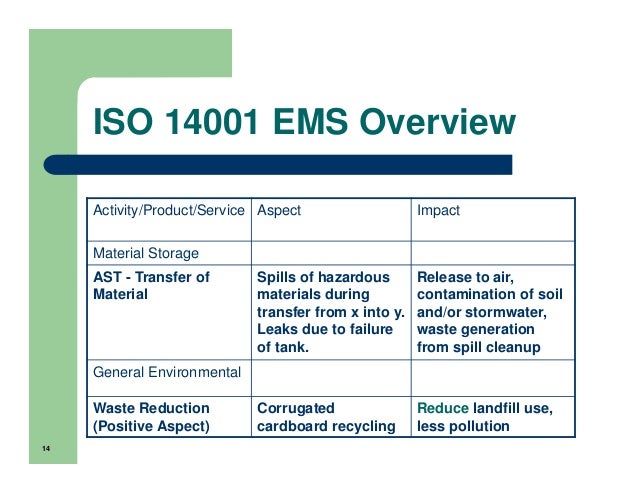 ISO emphasizes the continuous. A review of the aspects and impacts and their significance. Conformity at the Registration Audit. Aug 04, 2016 Aspects and Impacts Master List - ISO 14001. (this is where I failed to comply during my audit.:-). Developing ISO 14001 Aspects and Impacts List.